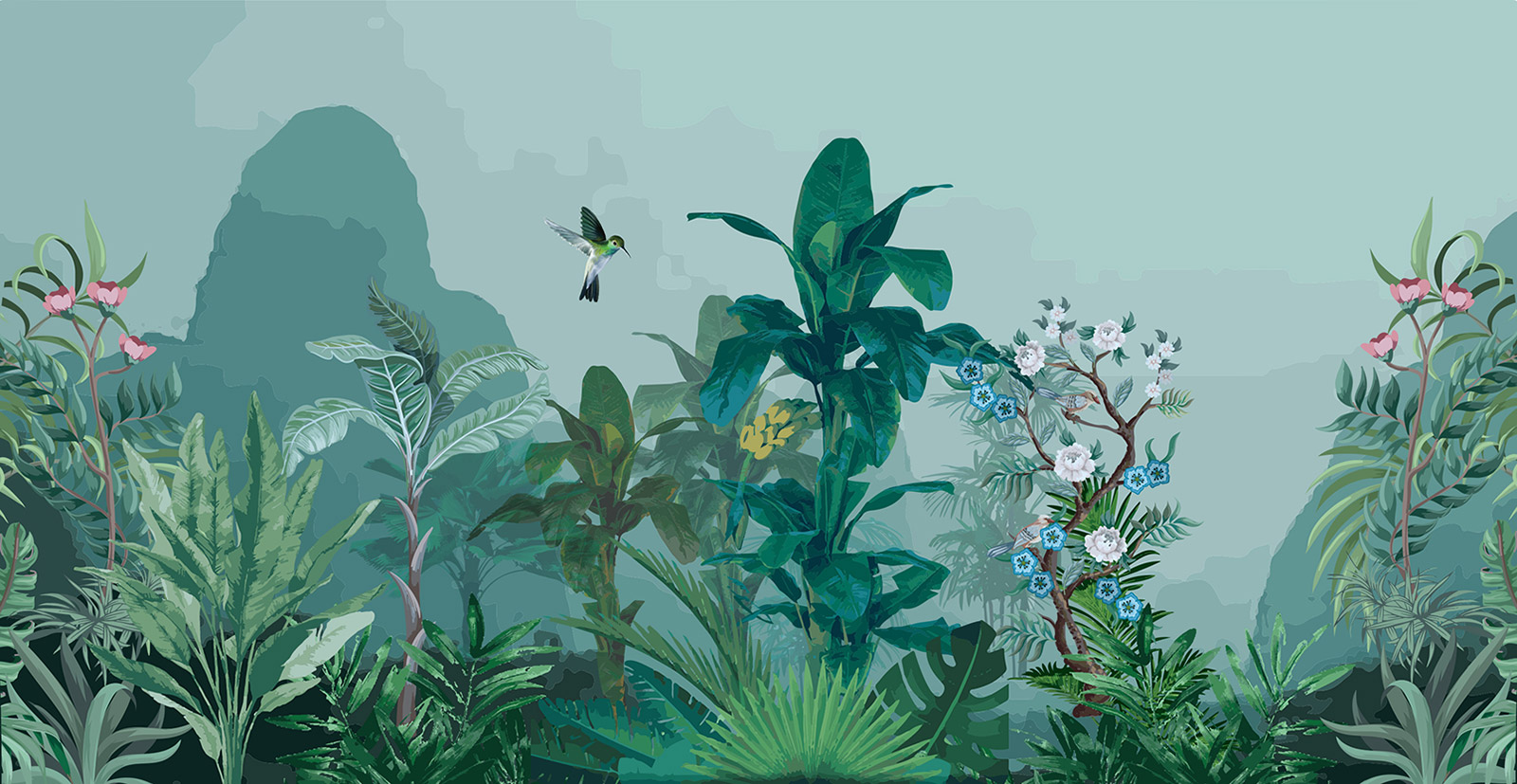 www.lumalea.it > Carte da parati > Carta da Parati Panoramica > Tropicale / Giungla > Carta da parati panoramica - Giardino Uccelli