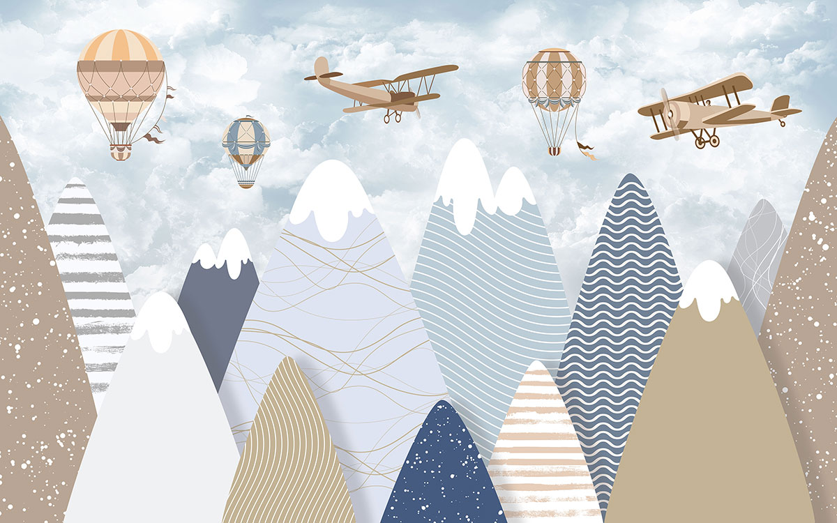 Carta da parati panoramica per bambini - Aerei Mongolfiere