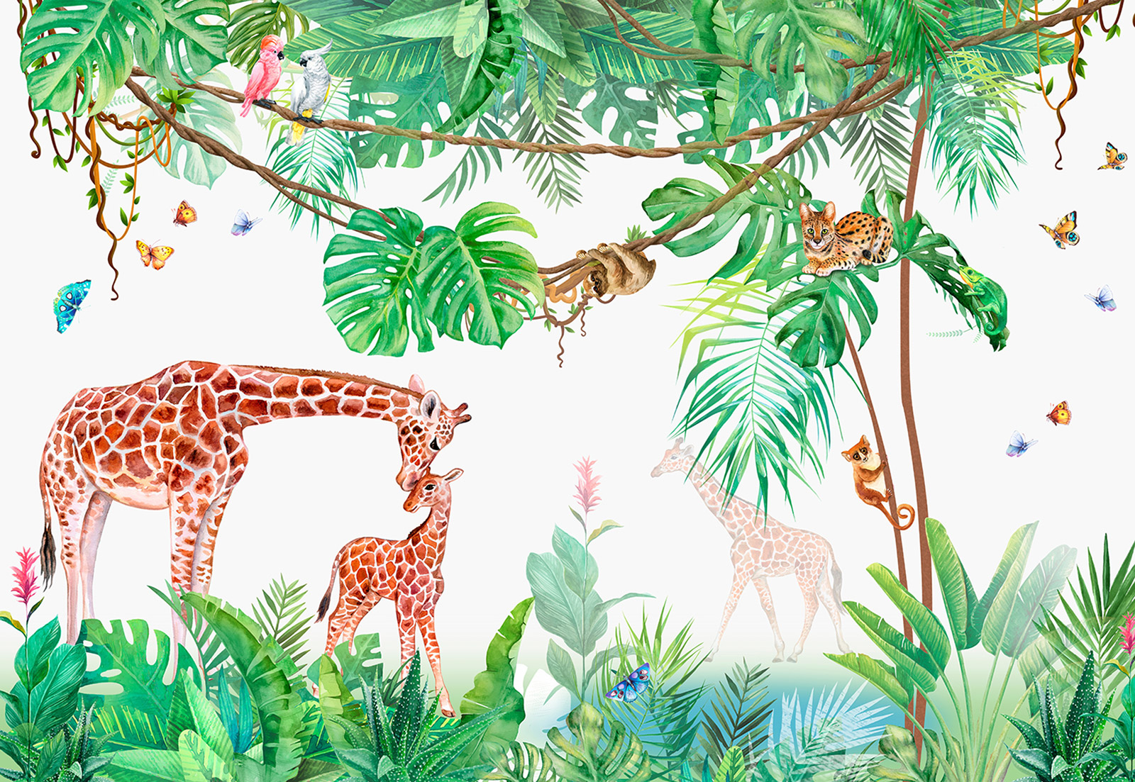 www.lumalea.it > Carte da parati > Carta da Parati Panoramica > Per i Bambini > Carta da Parati Panoramica > Carta da parati panoramica per bambini - Animali della giungla