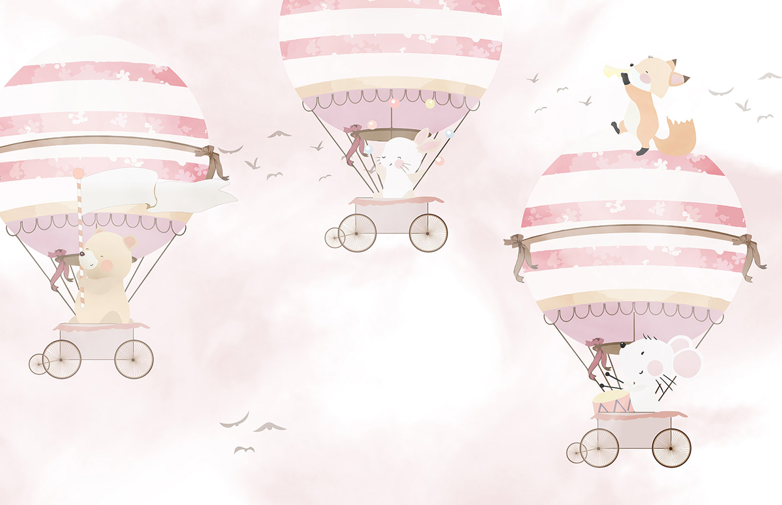 Carta da parati panoramica per bambini - Animali Mongolfiere