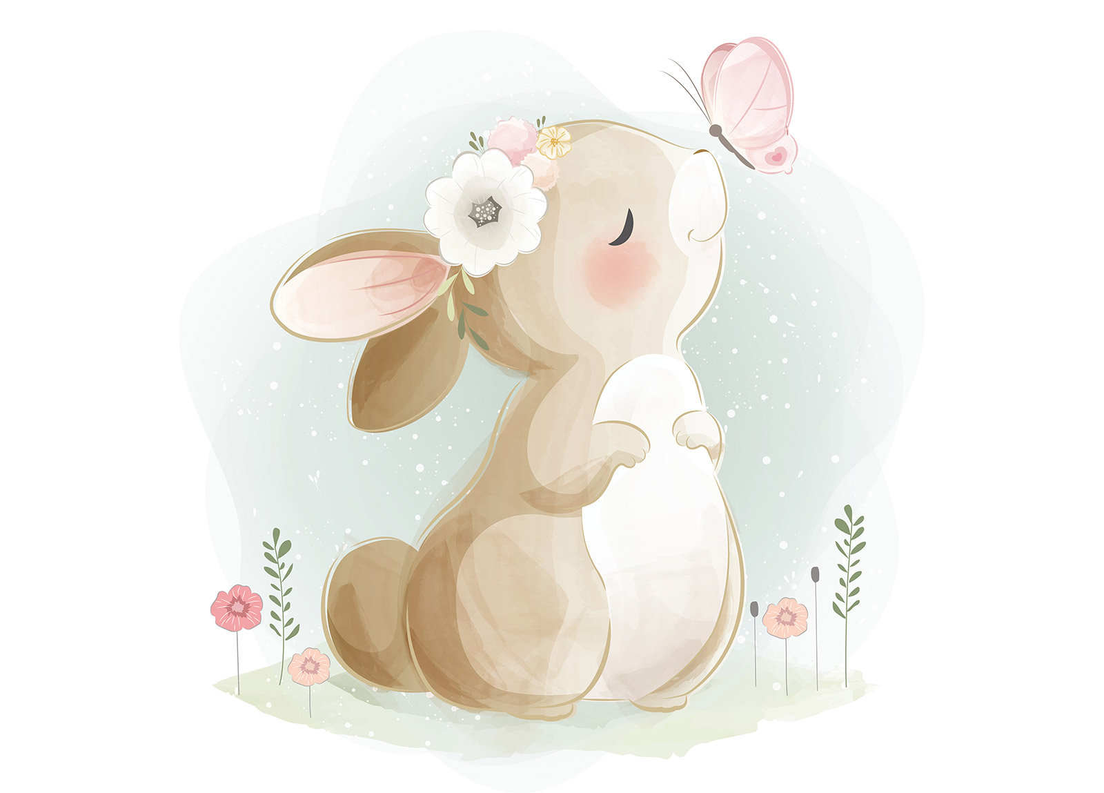 Carta da parati panoramica per bambini - Coniglio Farfalla