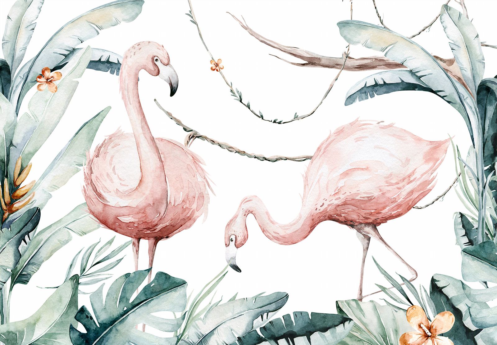www.lumalea.it > Carte da parati > Carta da Parati Panoramica > Per i Bambini > Carta da Parati Panoramica > Carta da parati panoramica per bambini - Fenicotteri Rosa
