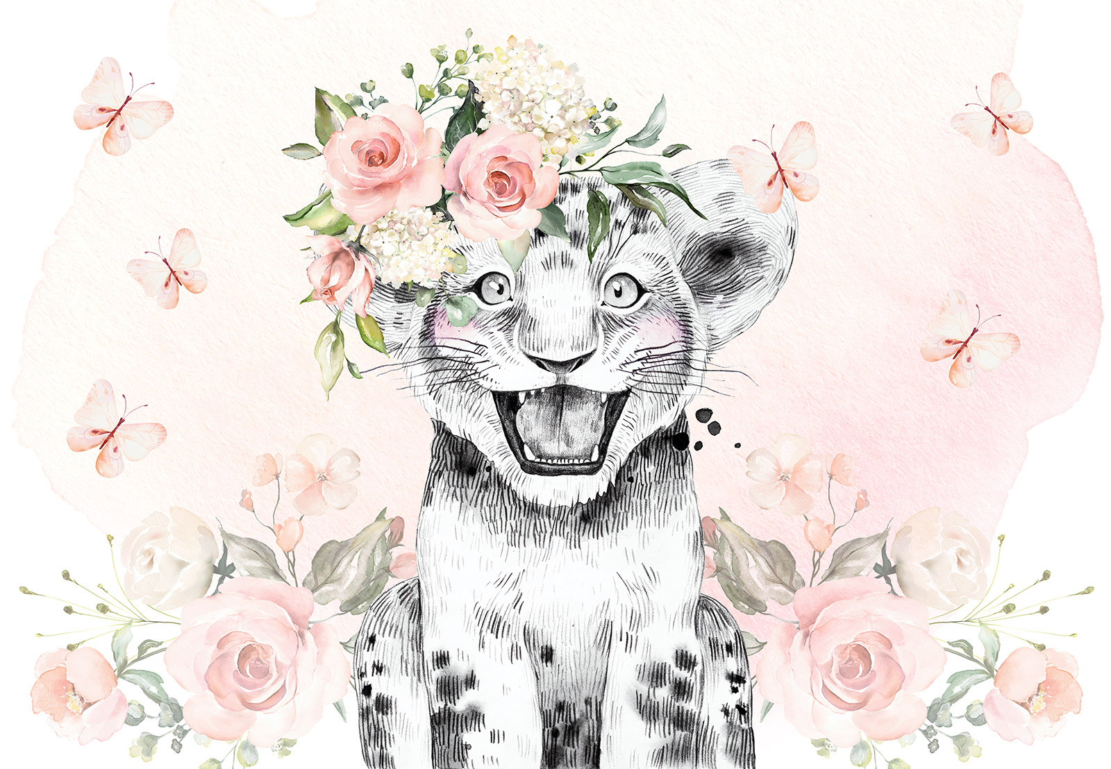 www.lumalea.it > Carte da parati > Carta da Parati Panoramica > Per i Bambini > Carta da Parati Panoramica > Carta da parati panoramica per bambini - Leone Fiori