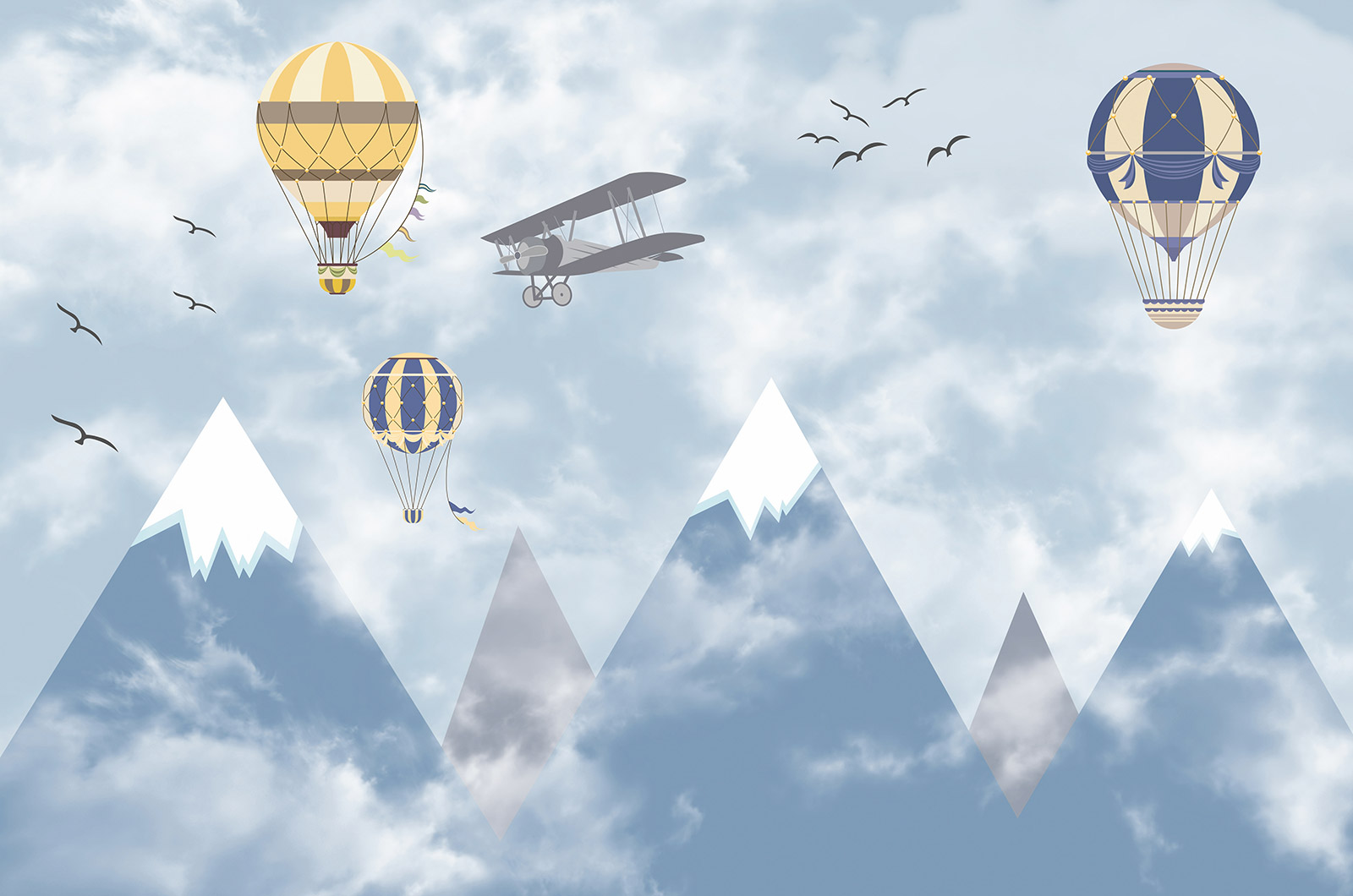 Carta da parati panoramica per bambini - Mongolfiere Aereo