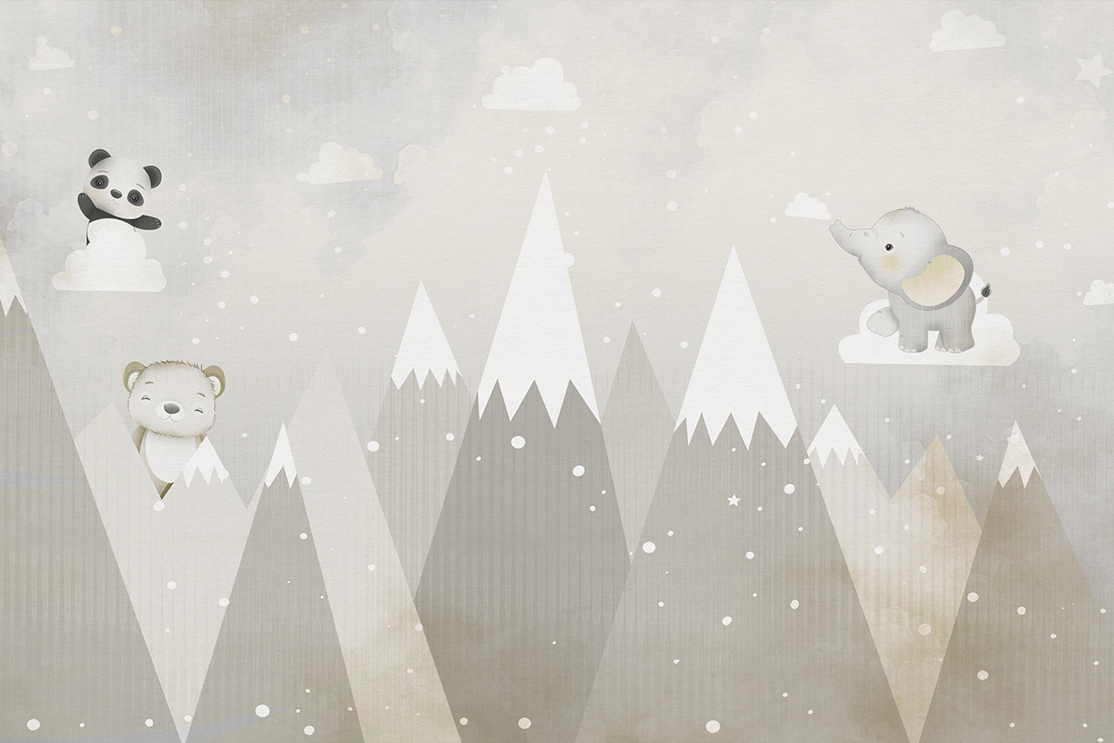 www.lumalea.it > Carte da parati > Carta da Parati Panoramica > Per i Bambini > Carta da Parati Panoramica > Carta da parati panoramica per bambini - Montagne Animali