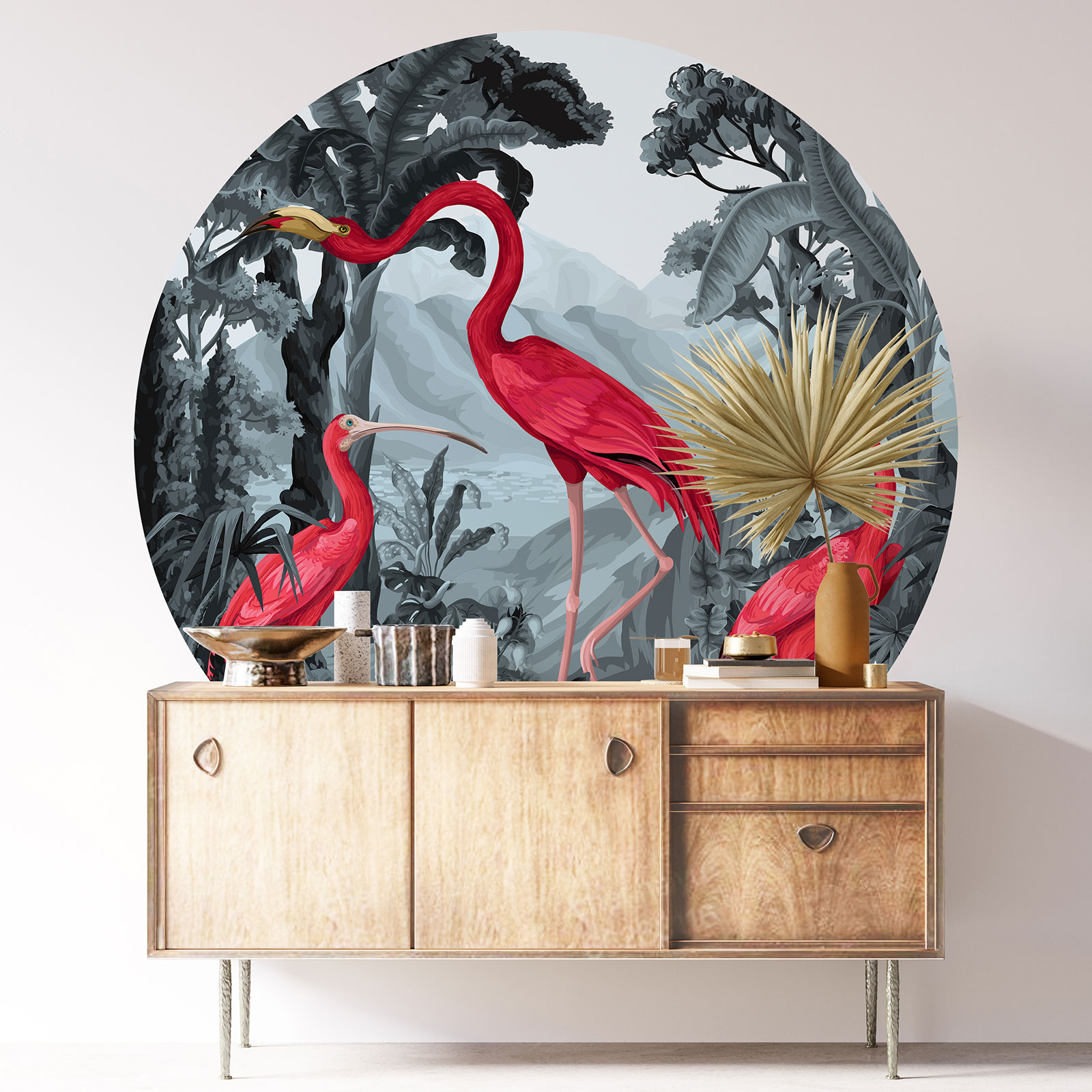 Adesivo Murale Cerchio / Rotondo - Fenicotteri Rosa