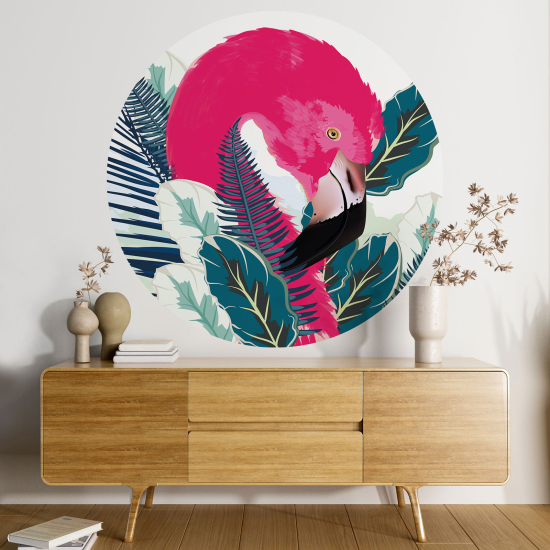 Adesivo Murale Cerchio / Rotondo - Fenicottero rosa