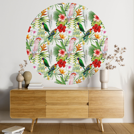 Adesivo Murale Cerchio / Rotondo - Fiori Uccelli