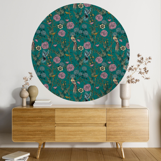 Adesivo Murale Cerchio / Rotondo - Fiori Uccelli