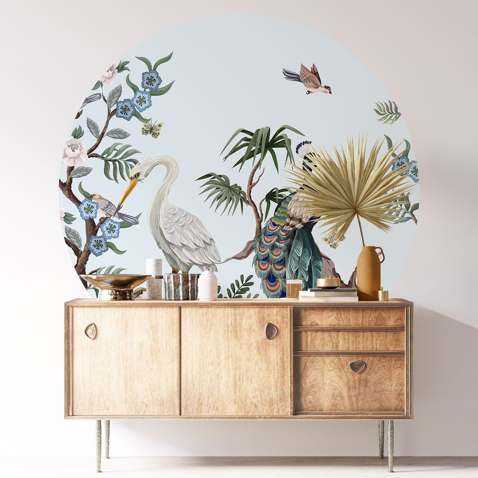 Adesivo Murale Cerchio / Rotondo - Fiori Uccelli