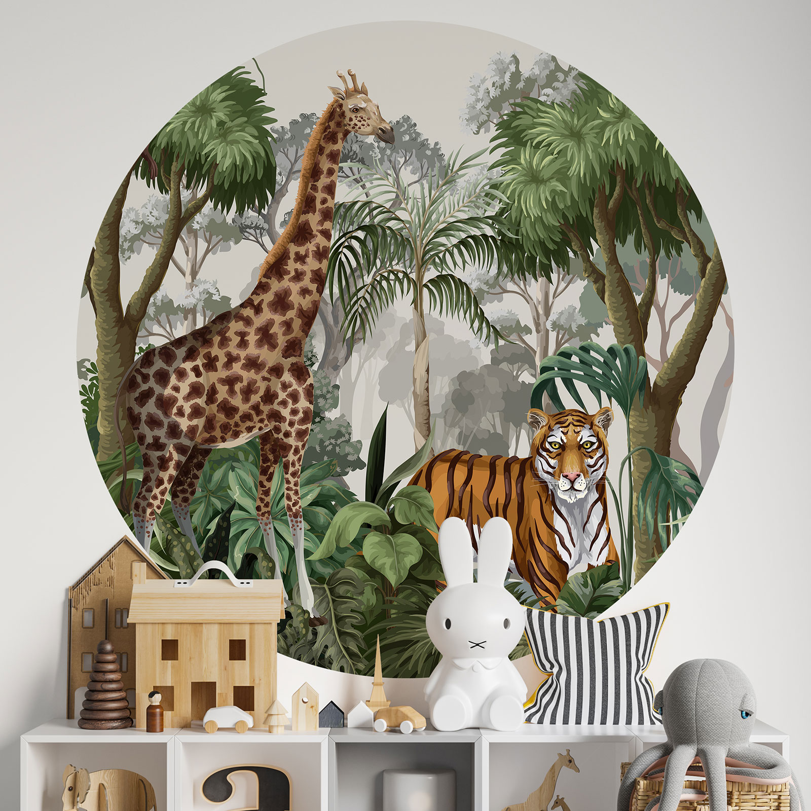 Adesivo Murale Cerchio / Rotondo per Bambini - Giungla Animali