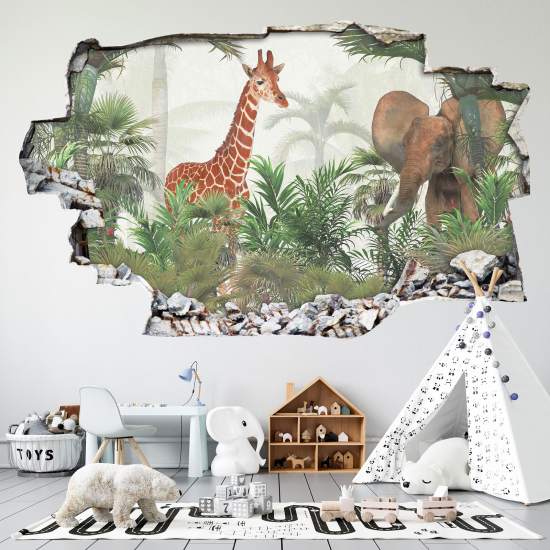 www.lumalea.it > Adesivi > Adesivi Murali Effetto 3D > Adesivi Effetto 3D Buco nel Muro > Modello 1 > Adesivo murale effetto 3D - Animali della giungla