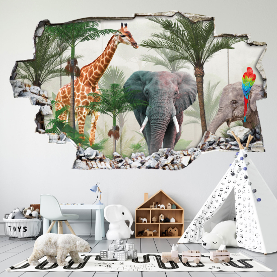www.lumalea.it > Adesivi > Adesivi Murali Effetto 3D > Adesivi Effetto 3D Buco nel Muro > Modello 1 > Adesivo murale effetto 3D - Animali della giungla