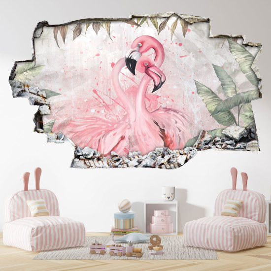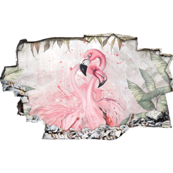 www.lumalea.it > Adesivi > Adesivi Murali Effetto 3D > Adesivi Effetto 3D Buco nel Muro > Modello 1 > Adesivo murale effetto 3D - Fenicotteri Rosa