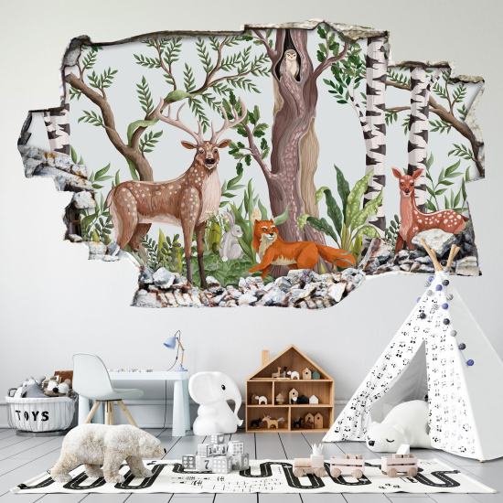 Adesivo murale effetto 3D - Foresta Animali