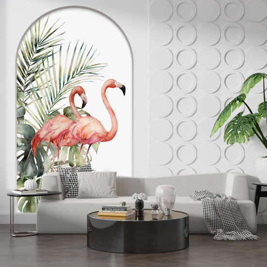 Adesivo Murale - Illusione ottica - Arco - Fenicotteri Rosa