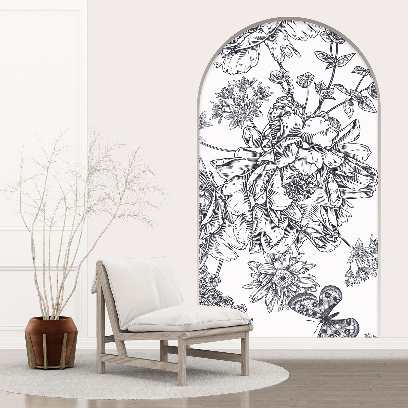 Adesivo Murale - Illusione ottica - Arco - Fiori Farfalla