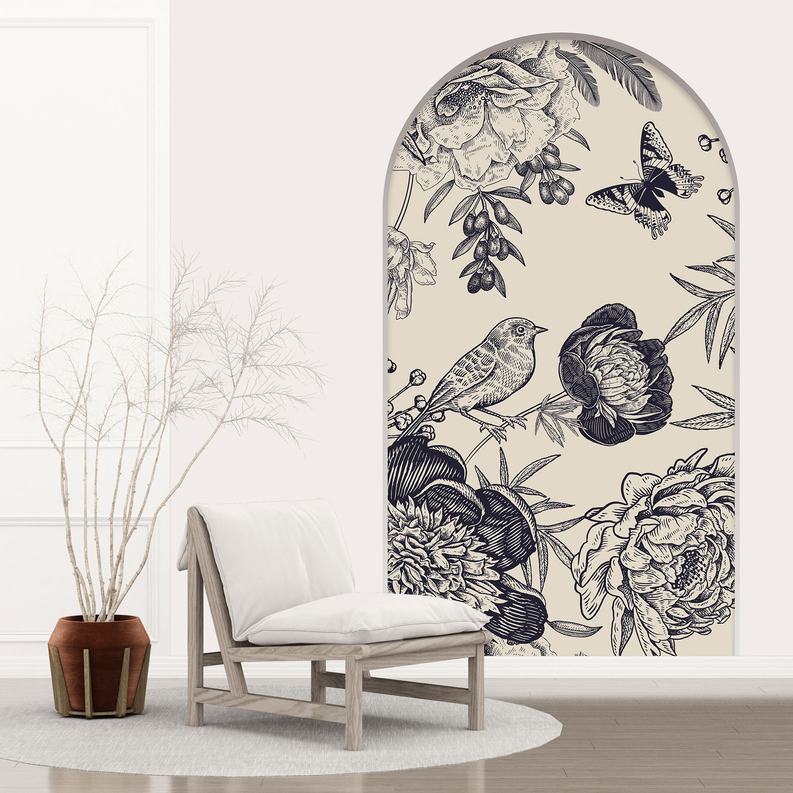 Adesivo Murale - Illusione ottica - Arco - Fiori Uccello