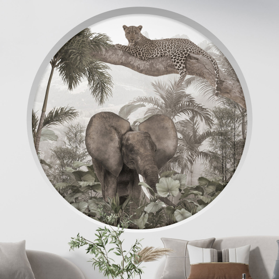 Adesivo Murale - Illusione ottica - Arco rotondo - Animali della giungla