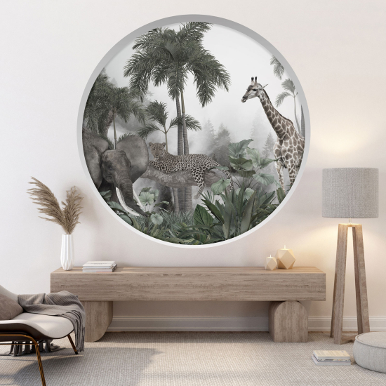 Adesivo Murale - Illusione ottica - Arco rotondo - Animali della giungla