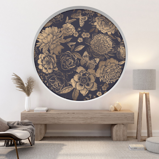 Adesivo Murale - Illusione ottica - Arco rotondo - Fiori Farfalle