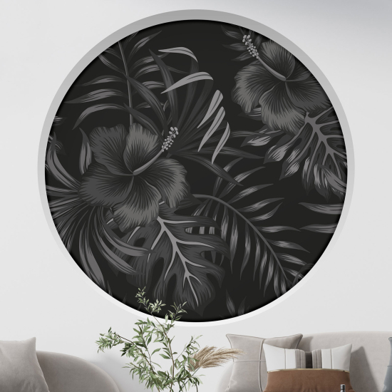 Adesivo Murale - Illusione ottica - Arco rotondo - Fiori tropicali