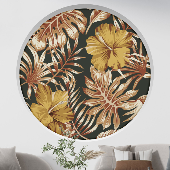 Adesivo Murale - Illusione ottica - Arco rotondo - Fiori tropicali