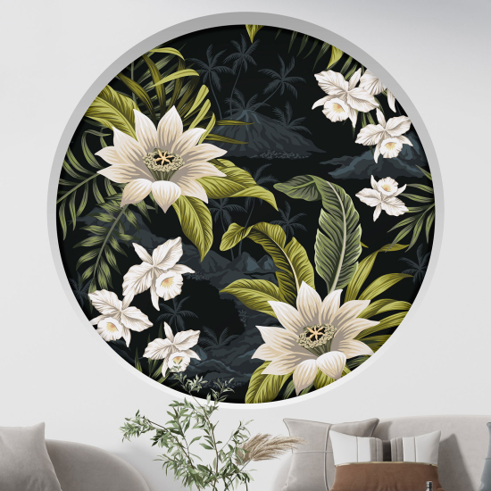 Adesivo Murale - Illusione ottica - Arco rotondo - Fiori tropicali