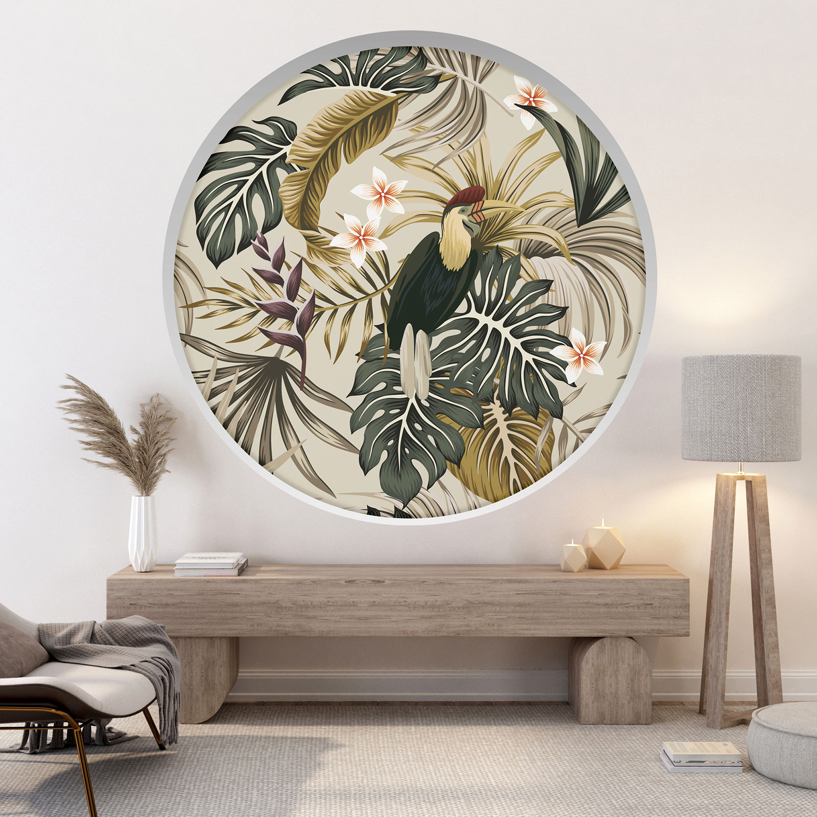 Adesivo Murale - Illusione ottica - Arco rotondo - Fiori Uccello