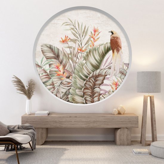 Adesivo Murale - Illusione ottica - Arco rotondo - Foglie tropicali
