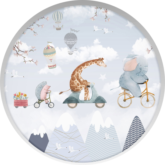 Adesivo Murale - Illusione ottica - Arco rotondo per Bambini - Animali nel cielo