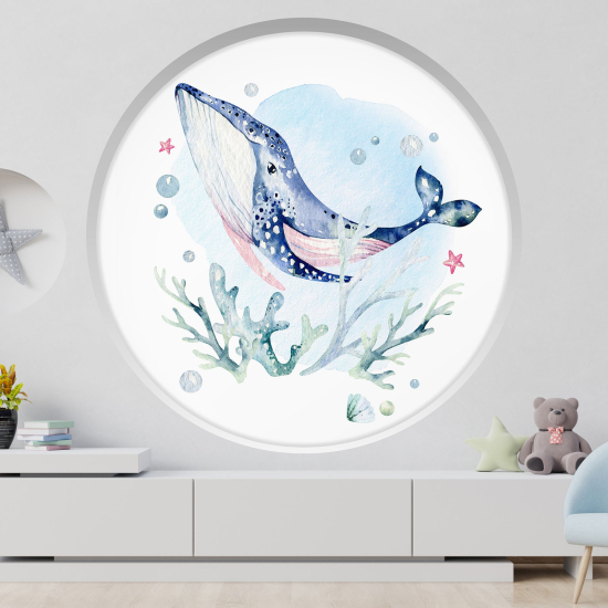 Adesivo Murale - Illusione ottica - Arco rotondo per Bambini - Balena
