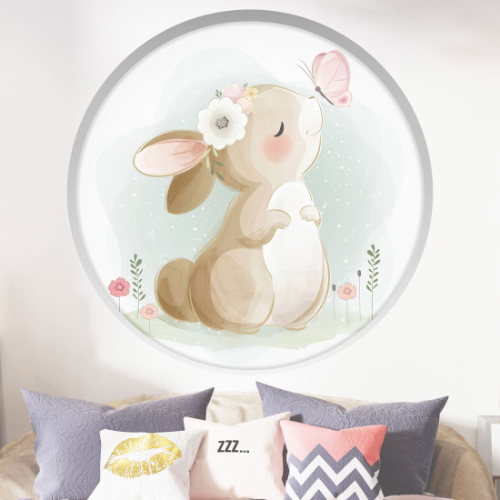 Adesivo Murale - Illusione ottica - Arco rotondo per Bambini - Coniglio farfalla
