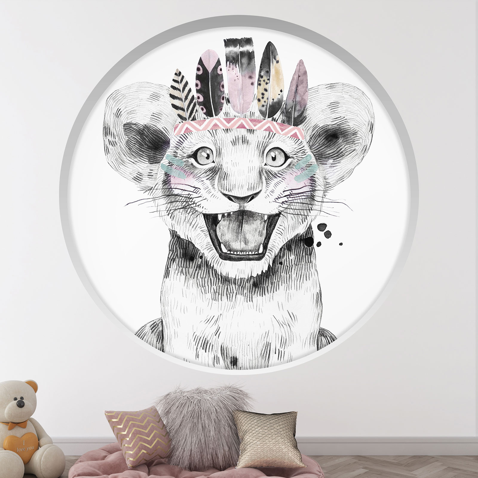 Adesivo Murale - Illusione ottica - Arco rotondo per Bambini - Cucciolo di leone indiano