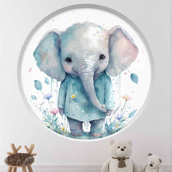Adesivo Murale - Illusione ottica - Arco rotondo per Bambini - Elefante