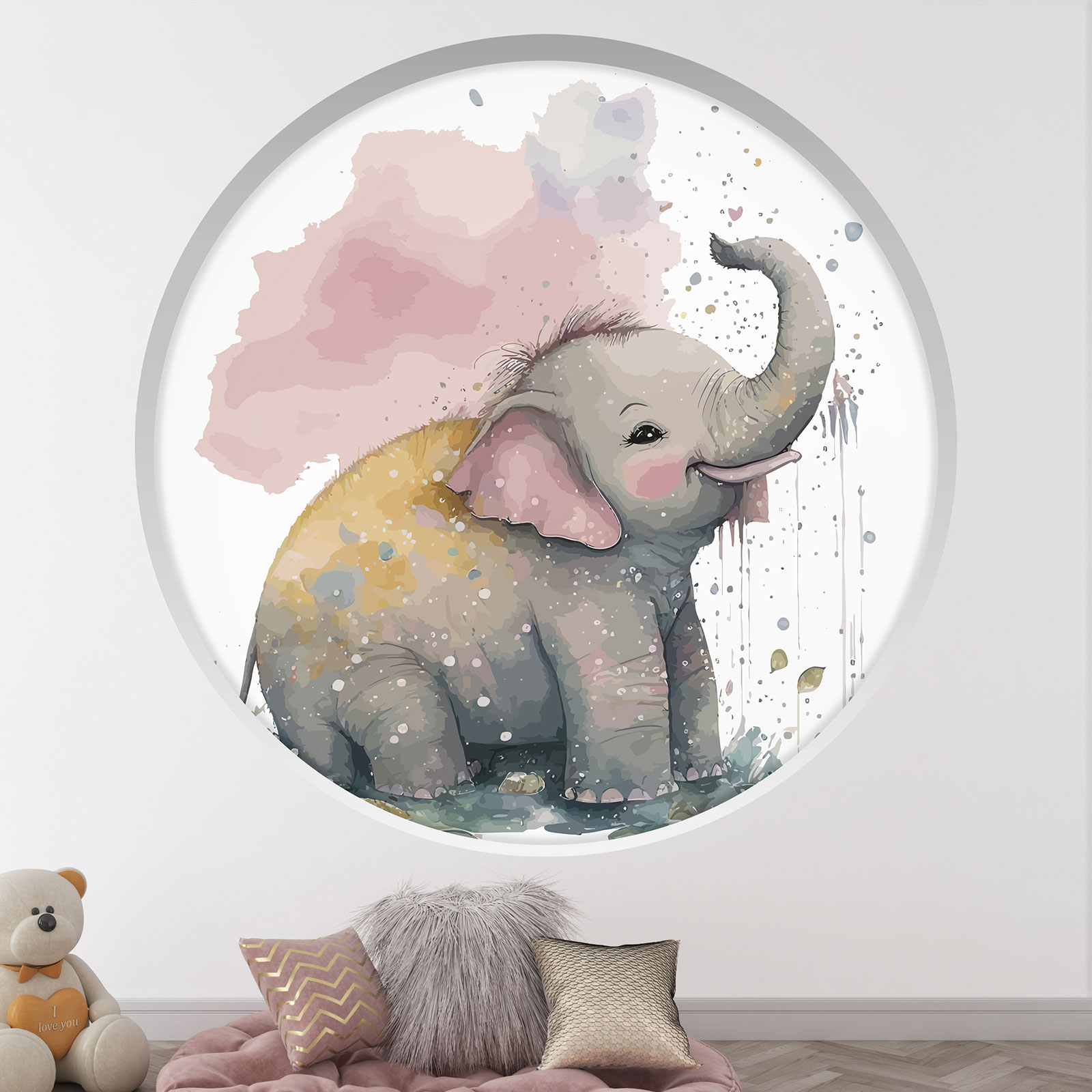 Adesivo Murale - Illusione ottica - Arco rotondo per Bambini - Elefante