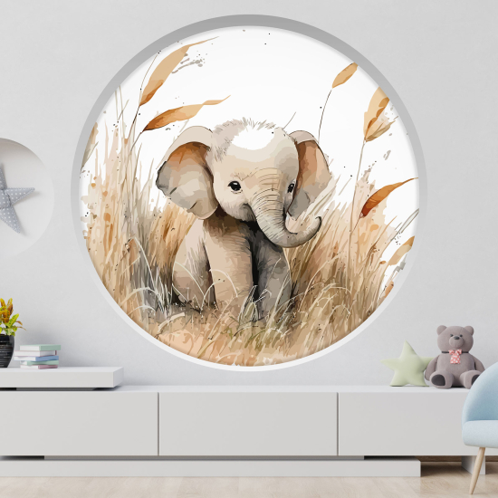 Adesivo Murale - Illusione ottica - Arco rotondo per Bambini - Elefante
