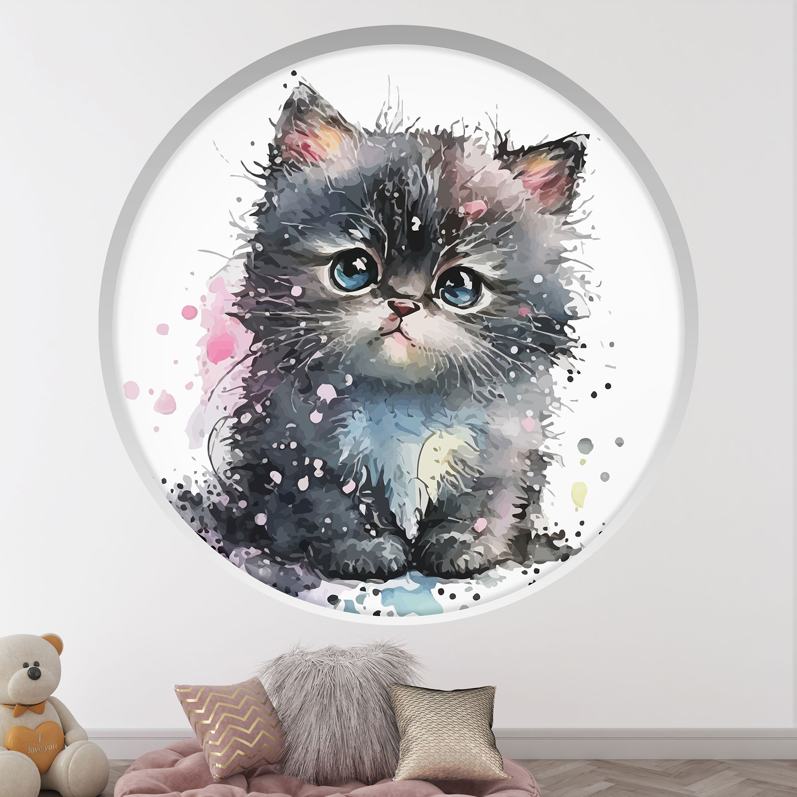 Adesivo Murale - Illusione ottica - Arco rotondo per Bambini - Gattino