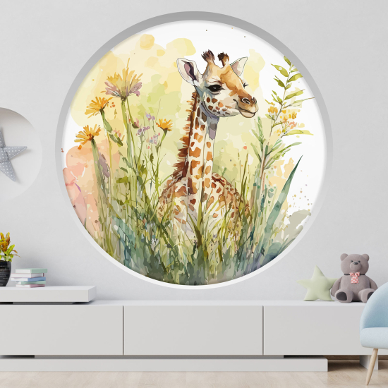 Adesivo Murale - Illusione ottica - Arco rotondo per Bambini - Giraffa fiori