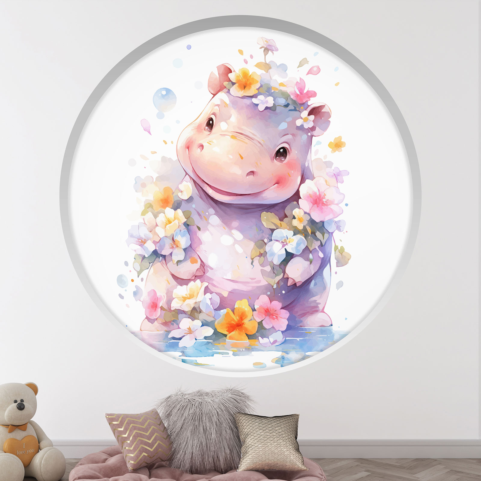 Adesivo Murale - Illusione ottica - Arco rotondo per Bambini - Ippopotamo