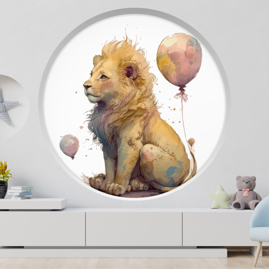 Adesivo Murale - Illusione ottica - Arco rotondo per Bambini - Palloncini Leone