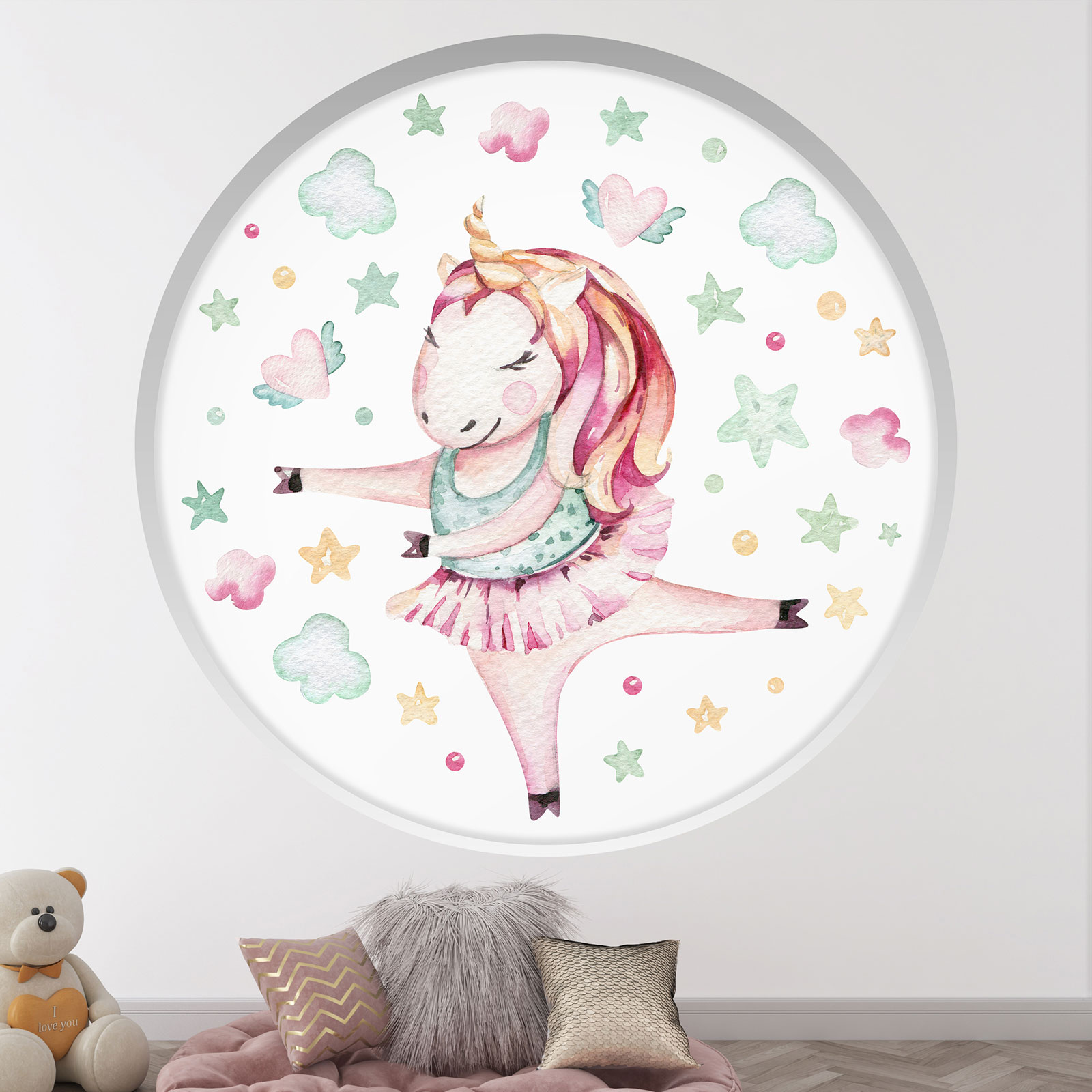 Adesivo Murale - Illusione ottica - Arco rotondo per Bambini - Unicorno