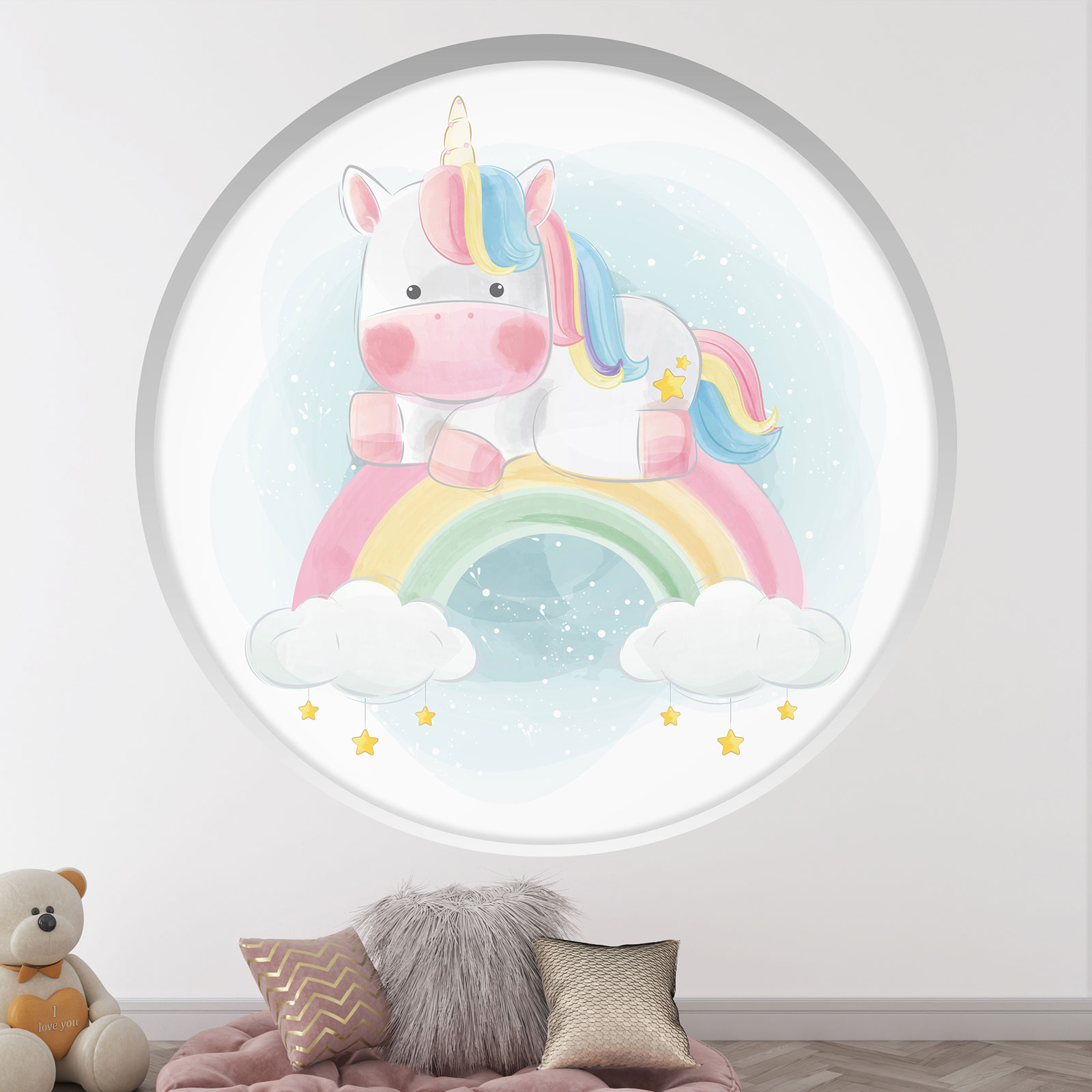 Adesivo Murale - Illusione ottica - Arco rotondo per Bambini - Unicorno Arcobaleno