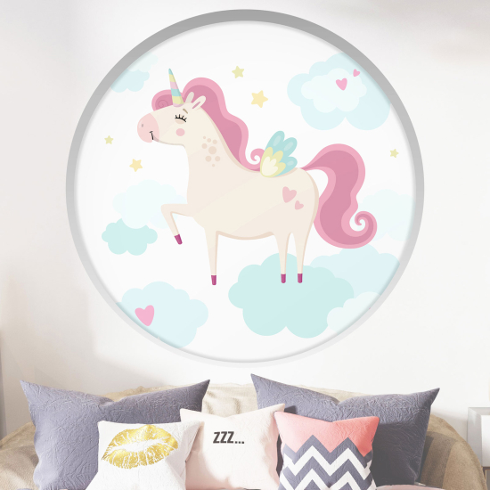 Adesivo Murale - Illusione ottica - Arco rotondo per Bambini - Unicorno nuvole