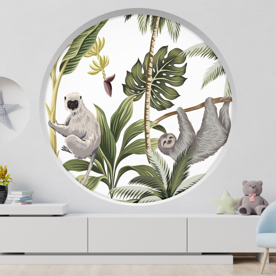 Adesivo Murale - Illusione ottica - Arco rotondo - Scimmia e bradipo