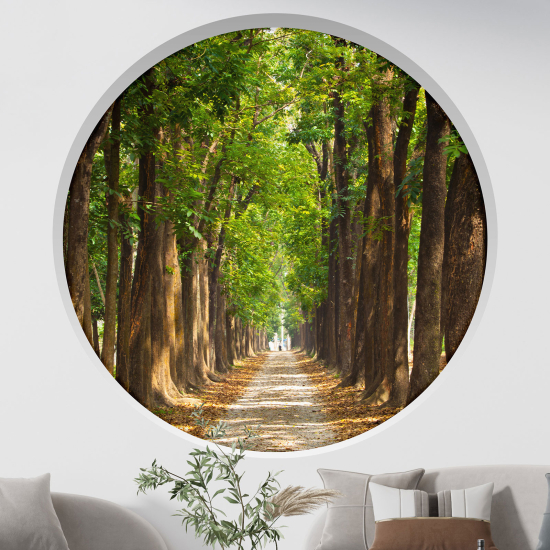 Adesivo Murale - Illusione ottica - Arco rotondo - Sentiero foresta