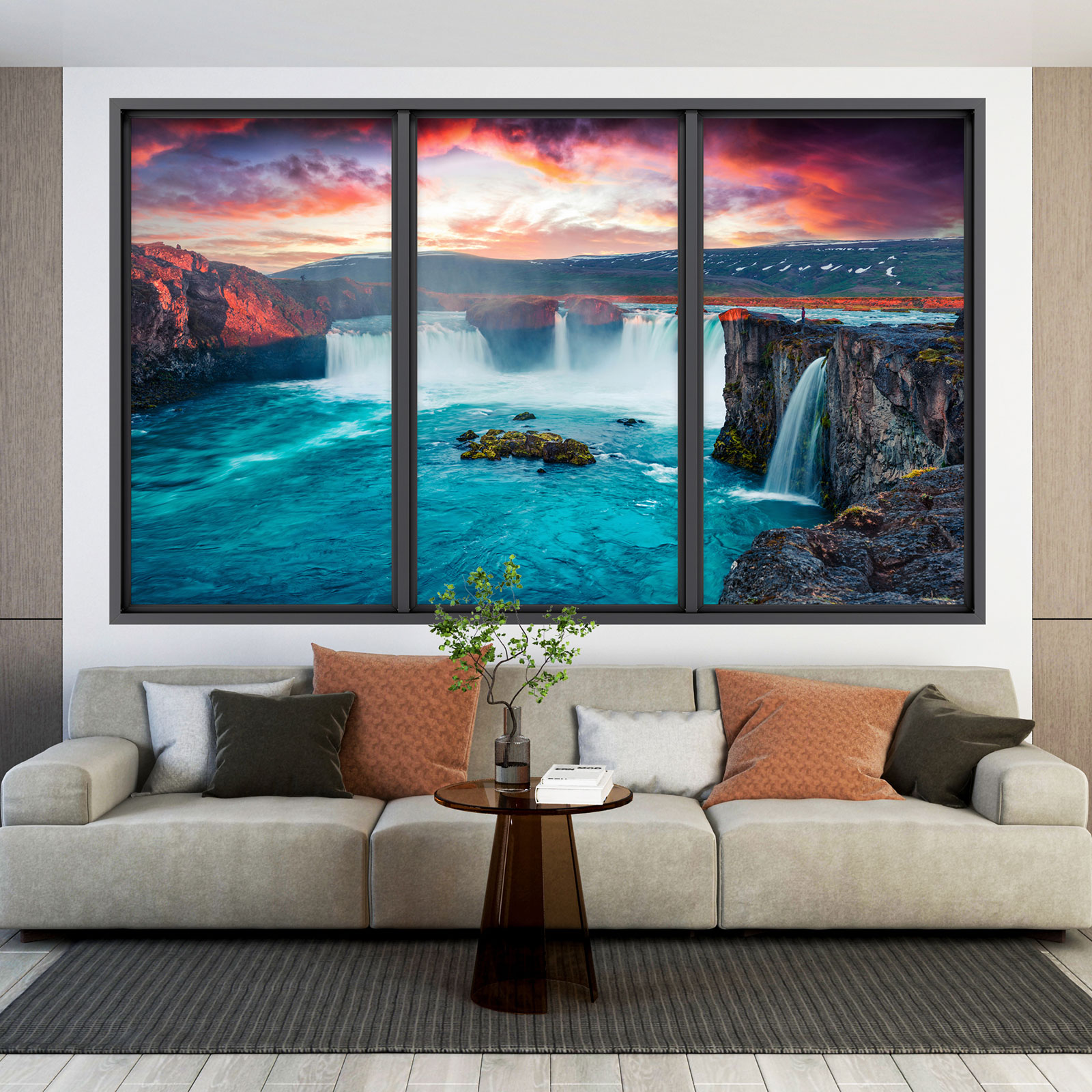 www.lumalea.it > Adesivi > Adesivi Murali Effetto 3D > Adesivi Murali Finestre in Alluminio > Adesivo Murale - Illusione ottica - Finestra - Cascata