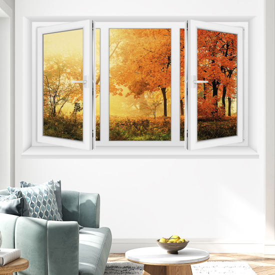 Adesivo Murale - Illusione ottica - Finestra - Foresta autunnale