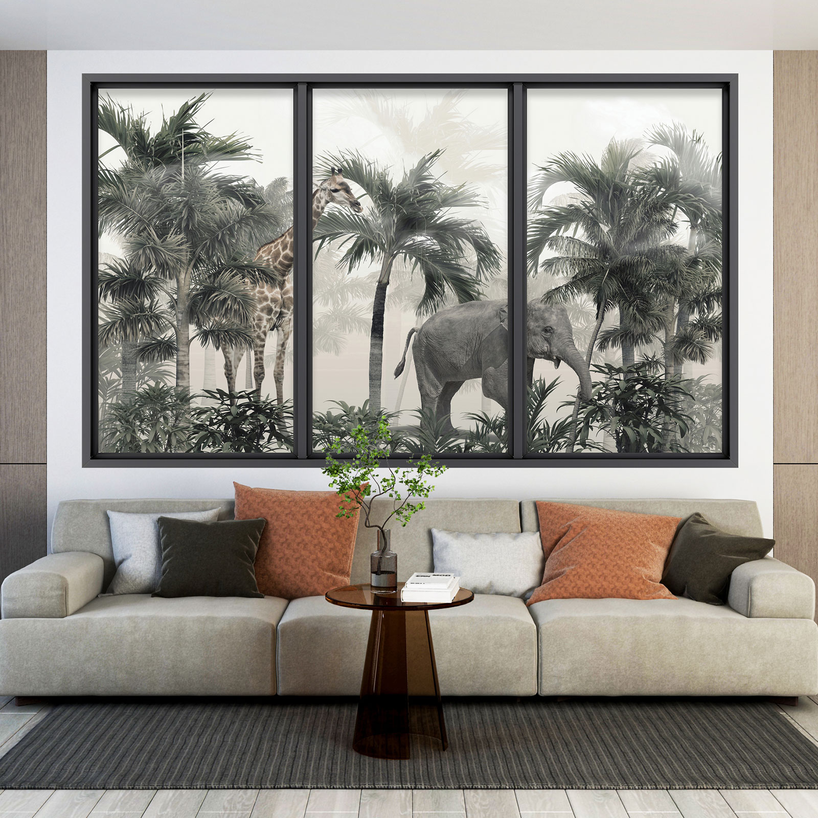 Adesivo Murale - Illusione ottica - Finestra - Giungla Animali