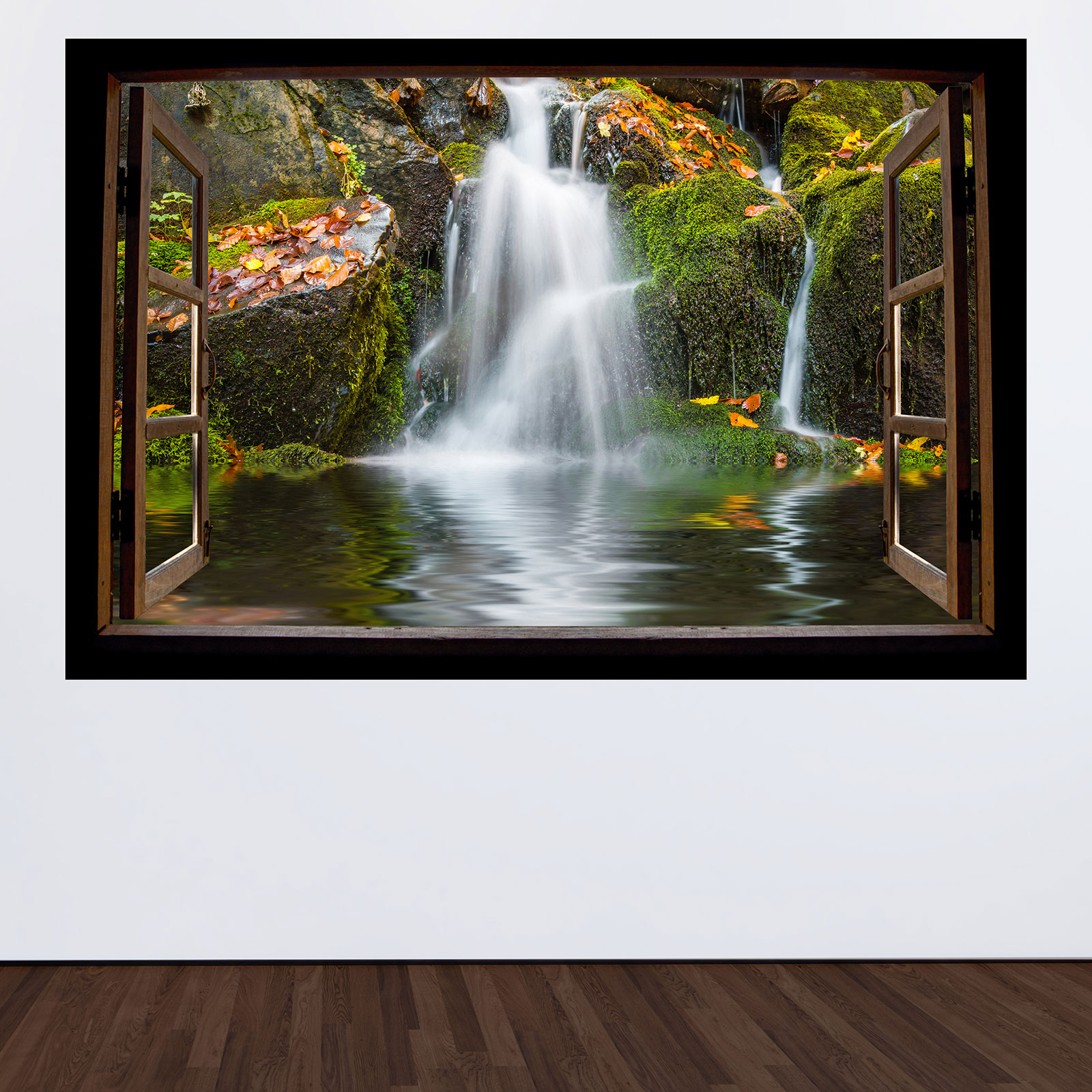 www.lumalea.it > Adesivi > Adesivi Murali Effetto 3D > Adesivi Murali Finestre in Legno > Adesivo Murale - Illusione ottica - Finestra in legno - Cascate
